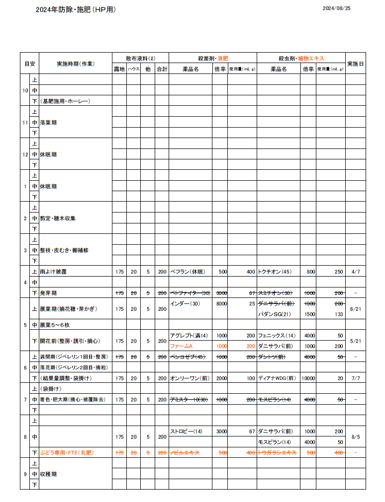 2024年度防除につきまして、昨年並みの回数で収穫を迎えることが出来ました。