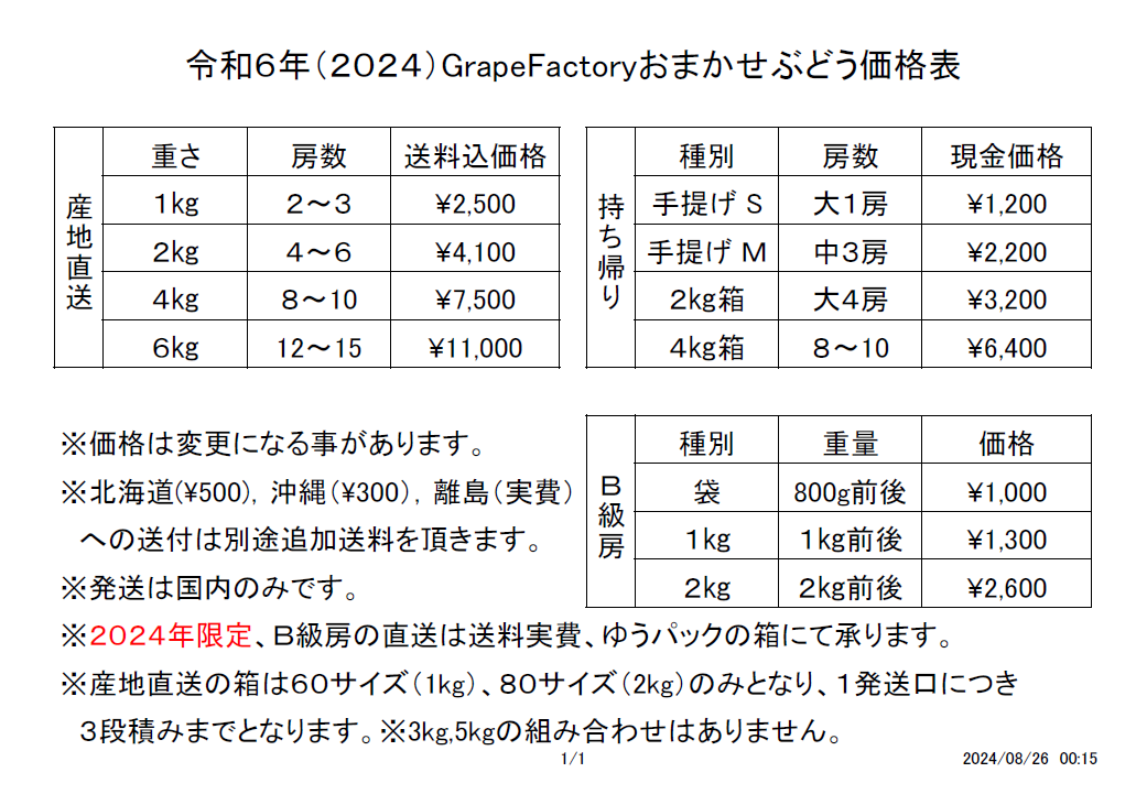 直送につきましては、ピオーネの熟期を待って行う予定です。